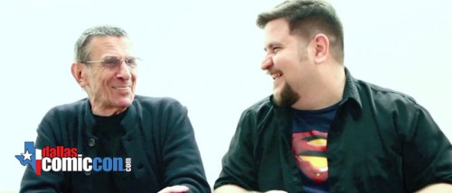 Then finally, in 2011, Leonard was our Guest of Honor at the very first Dallas Comic Con held at the Irving Convention Center. This was announced as one of his final convention appearances as he was retiring from the con circuit. I was able to introduce him for his special panel, that was not a traditional Q&A but rather a unique look at his personal life through photos and stories… it was amazing. As we started, I asked the audience to snap their photos early and get it out of their system so as not to be distracting, then someone asked if they could shoot video. I guessed it was okay, and said I just hoped Leonard wouldn’t “slap me” if I was wrong. As he walked up and took the mic, he announced “I don’t slap, I pinch!” When Nimoy finished for the day, I did a quick little exit interview with him, which you can see below. He was excited as he was about to be heard once again as a Transformer in Michael Bay’s TRANSFORMERS: DARK OF THE MOON.
