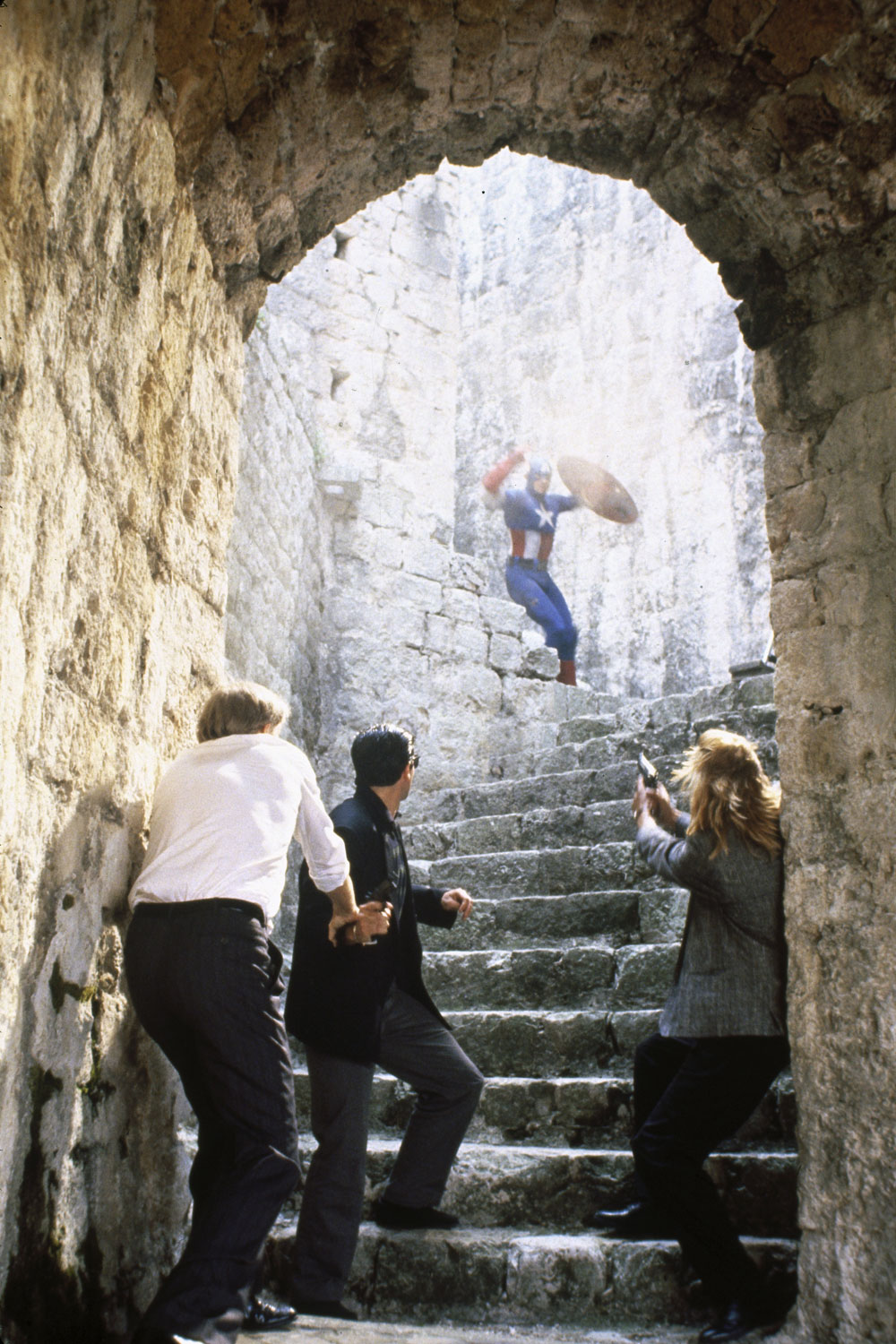 You can joke about it all you want, but there’s actually a lot of fans out there with fond memories of the Albert Pyun-directed 1990 version of CAPTAIN AMERICA. I’m one of them. Granted, it’s far from being a masterpiece, but you can certainly tell they tried to make fairly faithful to the comics. Matt Salinger wasn’t the most charismatic Steve Rogers, but both Ned Beatty and Ronny Cox are pretty likable here, and you can see Scott Paulin is having some fun hamming it up as the Red Skull (who for some reason is Italian here). There’s surprisingly a lot of endearing moments in the obviously low budget production, though there’s equally lots of groan-inducing scenes – Cap’s rubber ears come to mind. Check out these rarely seen high-resolution images from the film, followed by an official trailer, and get ready for the long-awaited DVD release on July 19 (right around the time of another big budget superhero movie).
